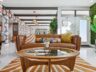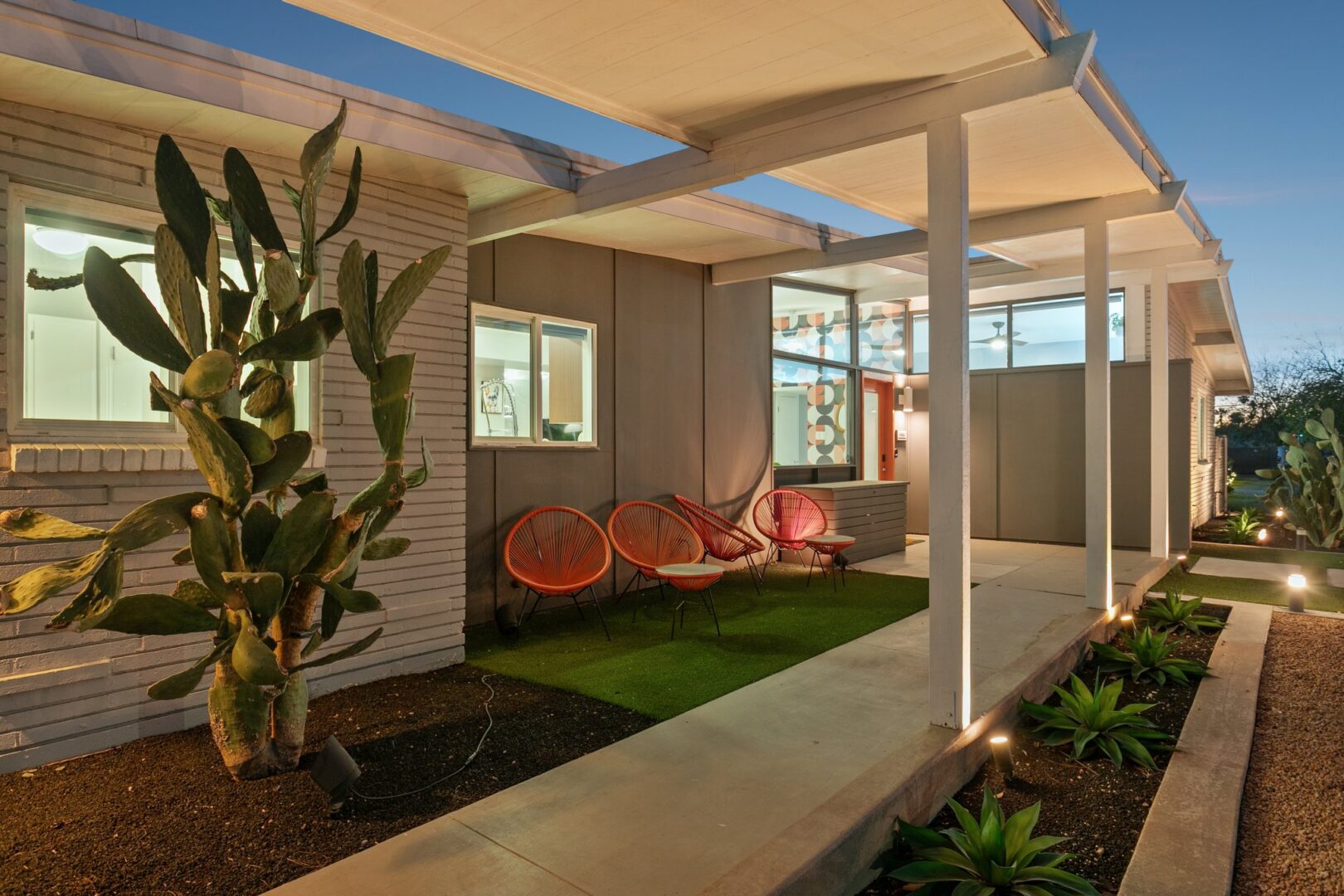 If you love 10’+ tall vaulted and beamed ceilings, floor-to-ceiling window walls and authentic mid-century style, prepare for a supreme treat. The mid-century bones are layered with thoughtful updates that strike a perfect balance between vintage and modern appeal. Maintaining the home’s mid-century spirit was paramount throughout the renovation and every choice reflects that commitment. Gracefully preserved where it matters most, the mid-century modern design has been enhanced with timeless new materials that feel cohesive and intentional. Specialized retro pendant lighting was sourced for period-appropriate vibes, paired with recessed lighting, all with Philips Hue smart bulbs for mood lighting. Designer wallpaper and lush greenery grace the walls as accents and bring this home to life. This home is move-in ready and can also be offered turn-key with all furnishings available on a separate bill of sale. If a short-term rental is part of your vision, the property has already demonstrated strong performance as a successful Airbnb.