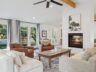 Thoughtfully reimagined through a $210,000+ permitted expansion and renovation, the floorplan establishes a serene architectural framework while inviting an effortless, free-spirited lifestyle. Exposed beams and vaulted ceilings provide architectural strength, balanced by soft white walls and broad glass openings that welcome light and landscape, shaping a tranquil and restorative living experience. Nearly every room opens to an outdoor space, reinforcing the home’s seamless connection to the outdoors. A dual-sided gas fireplace anchors the composition, subtly articulating the living spaces while maintaining an uninterrupted sense of flow. From every vantage point, light and landscape take center stage.