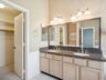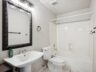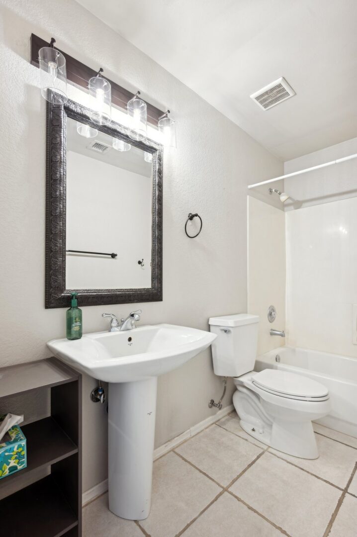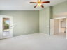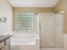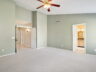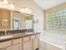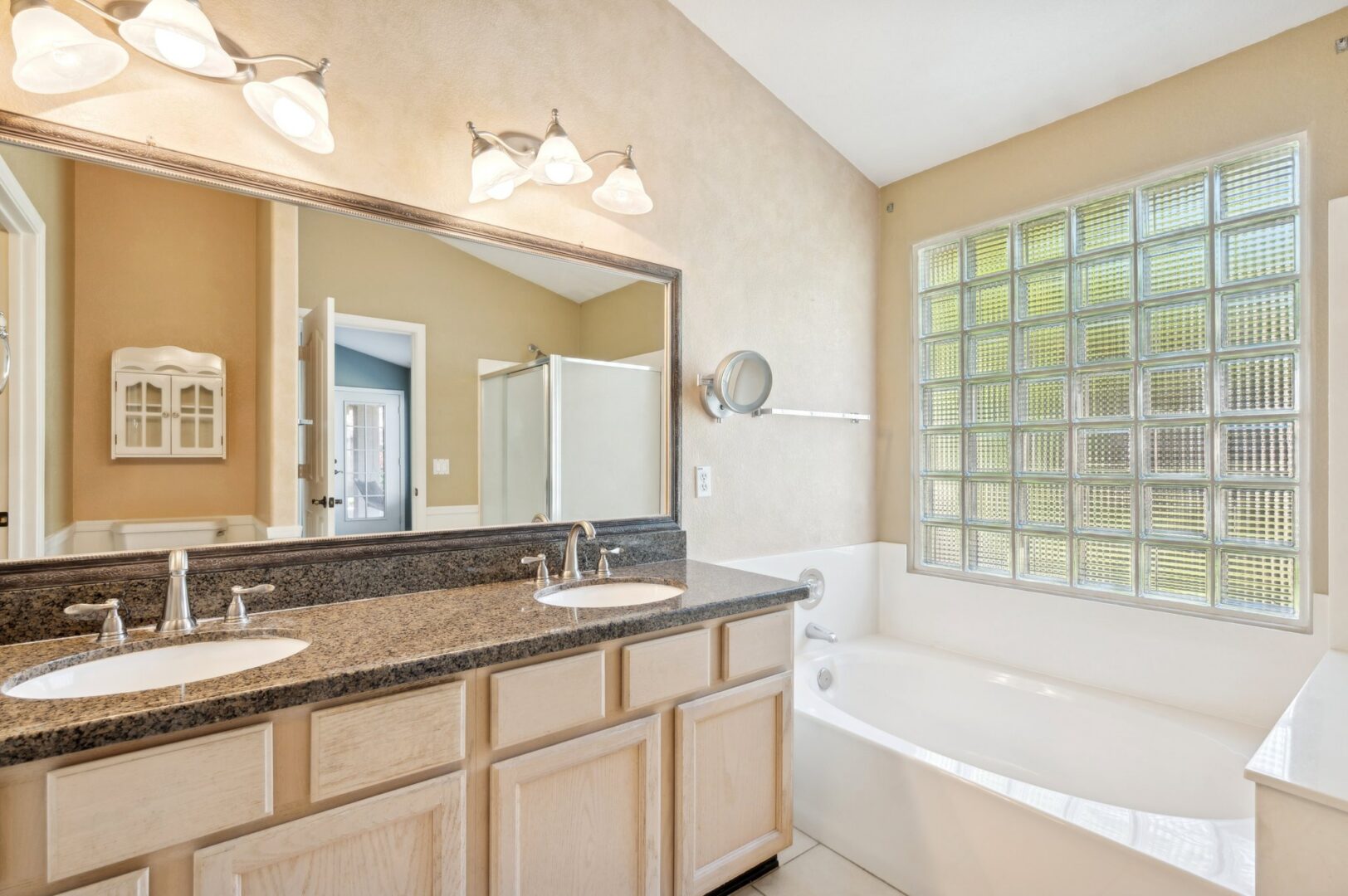 The primary suite welcomes you through double doors and features French door access to the rear covered patio, a generous walk-in closet and a spacious bath with dual sinks, separate shower, soaking tub and distinctive glass block accents. Secondary bedrooms offer vaulted ceilings, plush carpeting, 2-inch blinds and ceiling fans. Utilize a bedroom to make a home office! The hall bath includes a tub and shower with cultured marble surround, pedestal sink and updated mirror and lighting.