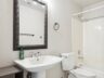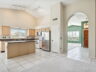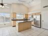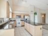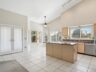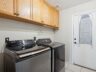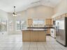 The open kitchen is appointed with classic shaker-style maple cabinetry, slab granite countertops and a central island with breakfast bar seating. Ceramic tile flooring, a pantry and a blend of stainless steel and white appliances ensure both durability and timeless appeal. An adjacent breakfast nook, framed by a wall of windows, overlooks the rear yard and fills the space with natural light. A spacious laundry room offers shaker-style maple cabinetry and granite countertop surfaces.