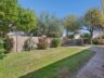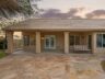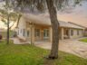 The pool-sized rear yard features a covered patio, open flagstone terrace and connecting walkways, framed by a sprawling natural lawn and mature landscaping including a lemon tree. Block fencing enhances privacy and structure. A 3-car garage offers versatility for vehicles, storage, home gym use or recreational equipment. Additional features include gutters, window screens and front security screen door.